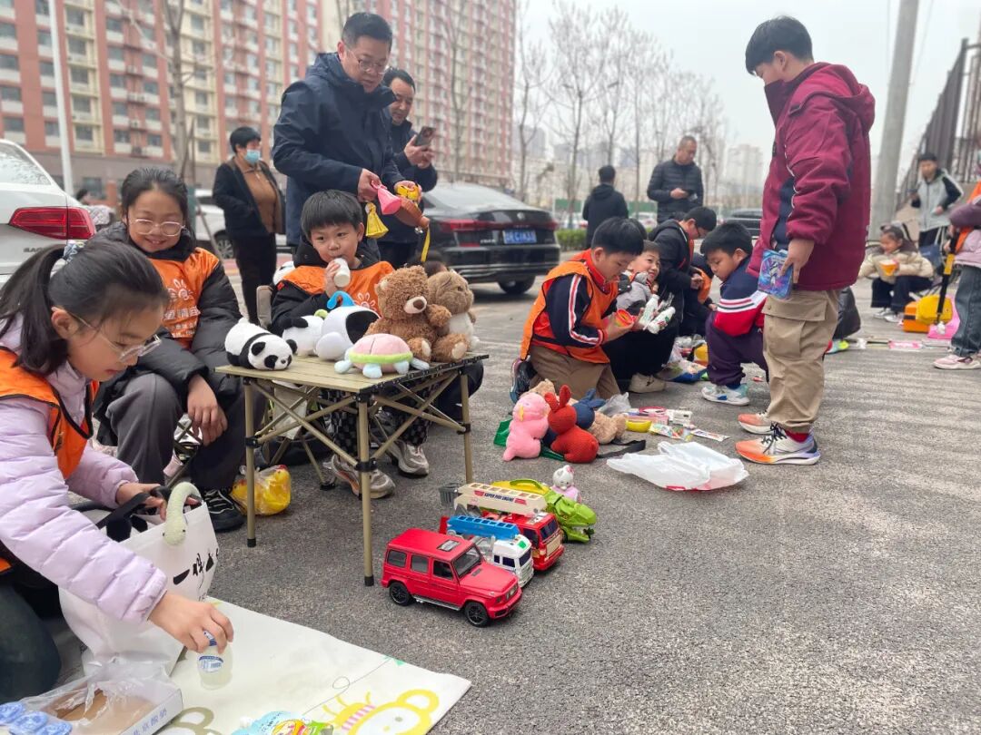 摊位前笑闹声、交谈声、问价声不绝于耳,昔日的玩具、曾经看过的漫画、闲置的生活用品、用过的文具...…这些平日里搁在角落的物品此时在货摊上“大显身手”,大朋友和小朋友们兴致勃勃地挑选着自己喜爱的物品,邻里之间又增添一份温馨和谐的氛围。