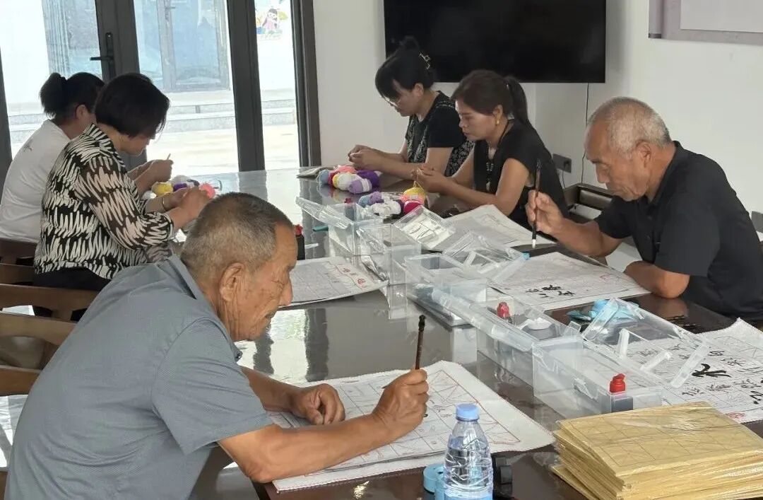 清晨的阳光洒进龙祠书院,75岁的村民刘河东正专注地练习书法,笔走龙蛇间,一幅“老骥伏枥,志在千里”的书法作品跃然纸上。“以前闲在家里没事干,现在天天来书院写字、看书,感觉越活越年轻!”刘大爷笑着说。棋牌室里,十来位老人正捉对厮杀。楚河汉界间,73岁的李大爷一招“马后炮”引得满堂喝彩。“自从书院有了象棋班,我们这些老棋友天天来‘杀’两盘,脑子越用越灵光!”