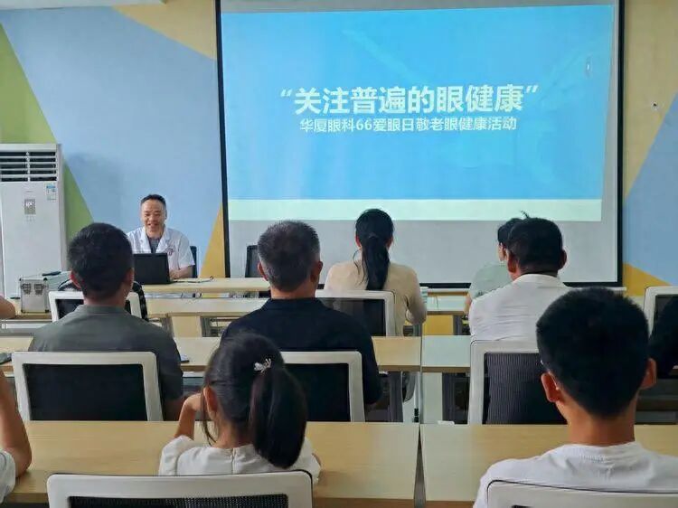护眼讲堂进社区,健康知识润民心。桑屯社区联合华夏眼科医院开展爱心服务进社区 “护眼” 活动,用专业守护居民 “心灵窗户”。来自华夏眼科医院的医生以通俗易懂的语言,从眼睛结构、常见眼病成因症状讲起,细致科普科学用眼、预防眼病的实用方法。针对中老年群体,重点解析常见眼病的形成原因、症状表现、治疗手段及预防要点;面向青少年群体,则围绕适度使用电子产品、加强体育锻炼等护眼妙招展开讲解,引导青少年从小树立眼健康意识。