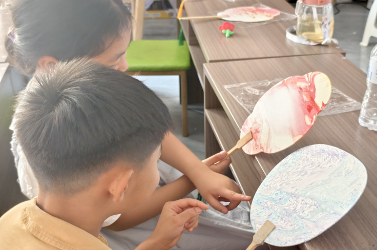 非遗传承:漆扇里的文化传承。在成武县文明办指导下,“社区合作人”们组织开展“扇舞丹青,漆彩传承”活动,助力青少年触摸非遗温度。组织观看《接棒中华,文化传递》公开课,引导思考文化传承使命;志愿者讲解漆扇历史与非遗价值,让古老技艺“活”起来;配合专业指导,带领孩子用扇坯创作,借亮片装饰激发创意,让漆艺在童真实践中焕新,厚植文化认同感。