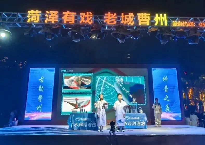 近日,“古韵曹州 科普之夜” 牡丹区西城街道南华社区首届科普节主场活动在老城曹州文化广场成功举办。这场活动不仅是一次精彩的科普盛宴,更是南华社区推进文化社区建设的生动实践,活动现场,科普剧、科普实验以及科普互动吸引了众多居民和过往行人驻足观看,为社区文化生活注入了全新活力。