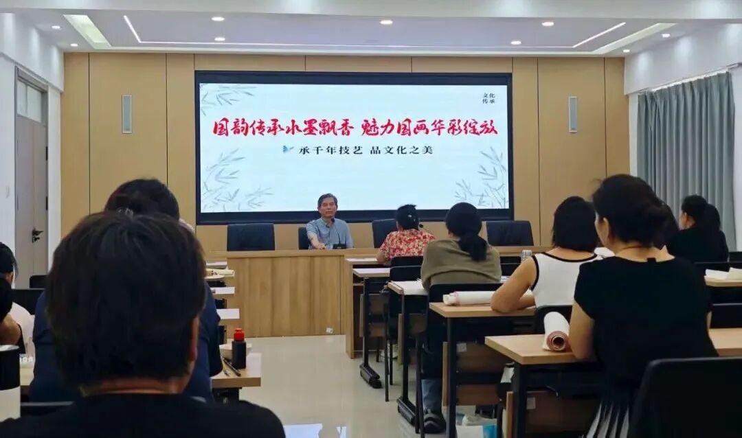 “今天的课程既是国画入门,也是安邻书院‘分层教学’理念的实践。”活动伊始,社区李书记在介绍活动初衷时,特别提及安邻书院的课程设计逻辑——针对居民中零基础者占比不低的情况,课程特意简化教学目标,以“掌握基础技法、完成局部练习”为核心,分为“基础理论+一对一指导”两部分。教学环节中,苏健老师结合自身创作经验,从毛笔握法、墨色调配、线条勾勒等入门知识点切入,用“蘸墨如蘸糖,轻重看纸张”的通俗比喻化解难点;庞伯明老师则穿梭在学员间巡回指导,小到纠正握笔姿势,大到调整局部构图,细致入微的辅导让零基础居民逐步找到手感。