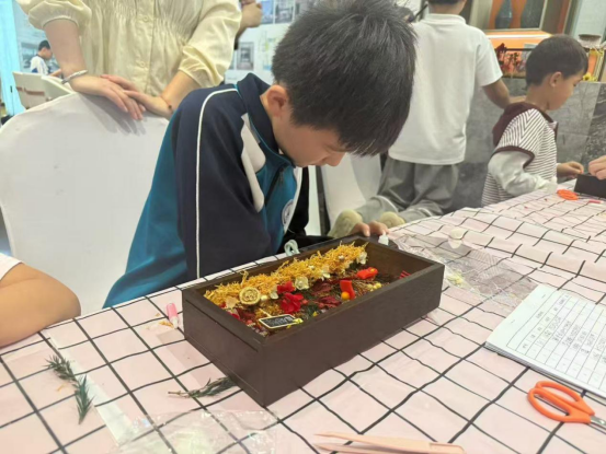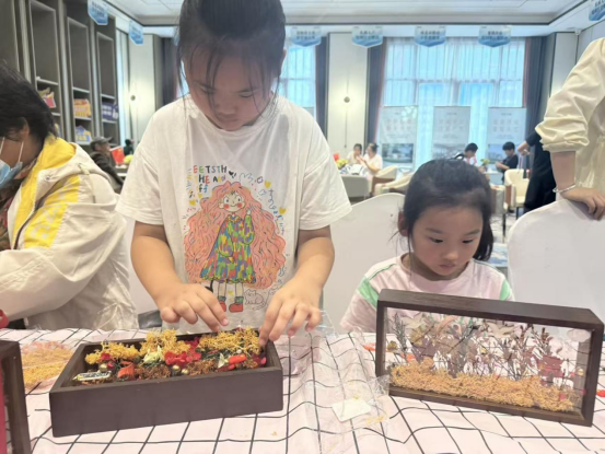 在专业老师的引导下,孩子们在书院静谧温馨的环境中整理花材、构思画面、制作干花相框,将无形的情感转化为有形的艺术作品。“我想把粉色小花放在中间,像妈妈的笑容。”五岁的萌萌轻声说道。手工创作成为儿童表达情绪的安心通道,而文化书院则为他们提供了释放创造力、疗愈心灵的适恰空间。