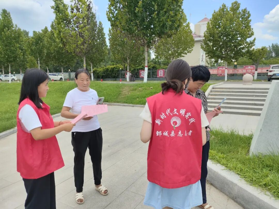 鄄城县古泉街道新时代文明实践站联合南城社区,在南城社区国际新城小区开展了“抵制高额彩礼,倡导文明婚俗”移风易俗宣传活动。