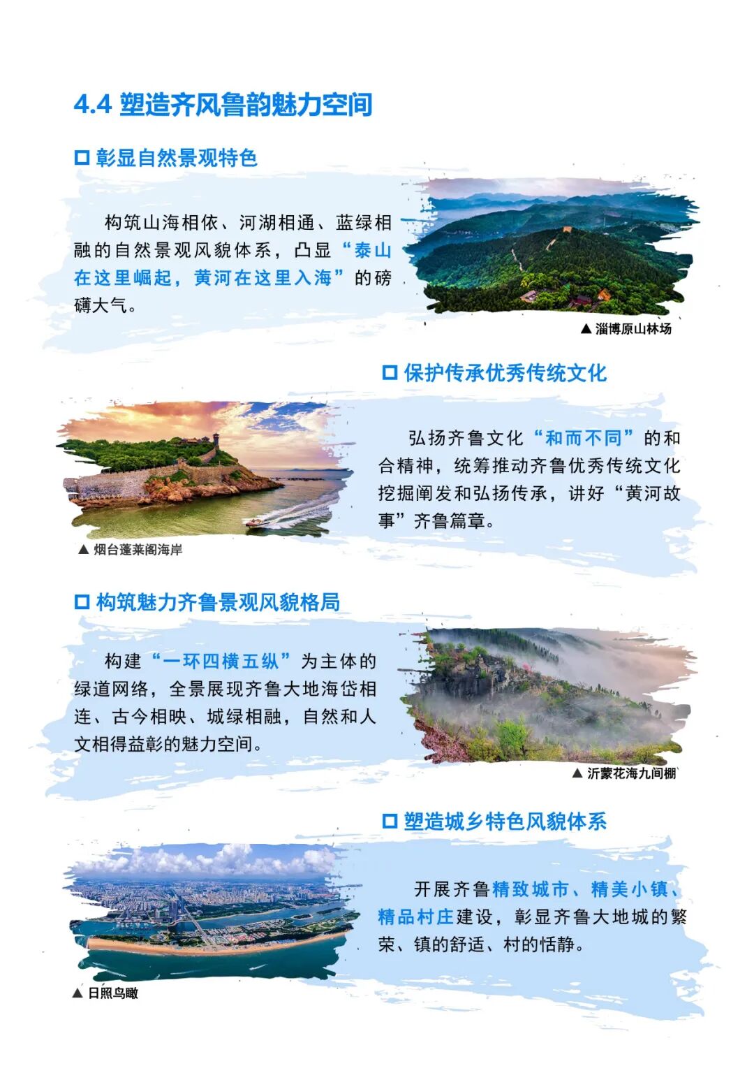 此外,《规划》还就打造山东半岛城市群、保护集中连片良田、推进生态修复治理、塑造省域魅力空间、建立安全韧性支撑体系等重点内容,提出规划策略。