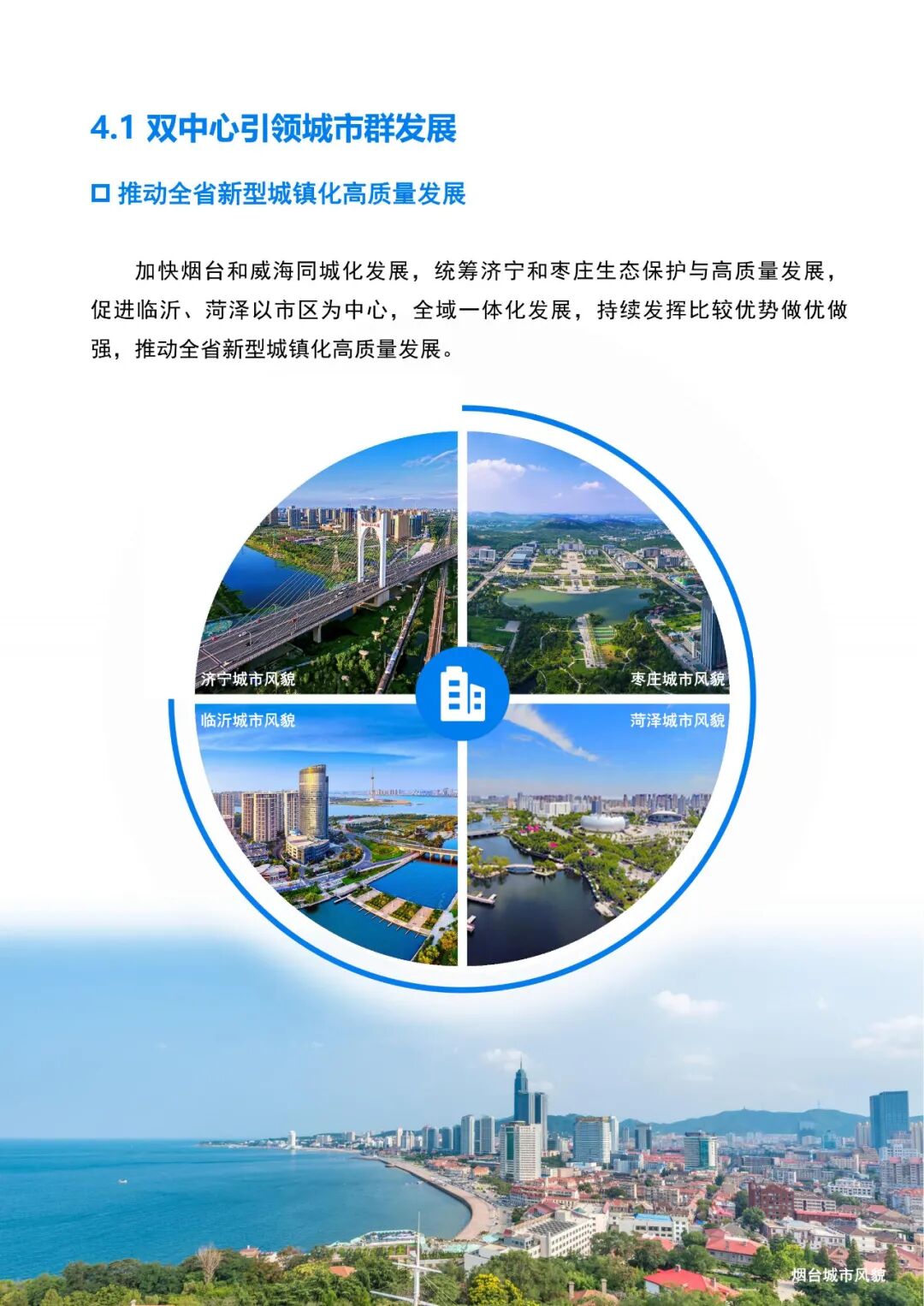 《规划》提到,山东将推动全省新型城镇化高质量发展,加快烟台和威海同城化发展,统筹济宁和枣庄生态保护与高质量发展,促进临沂、菏泽以市区为中心,全域一体化发展,持续发挥比较优势做优做强,推动全省新型城镇化高质量发展。
