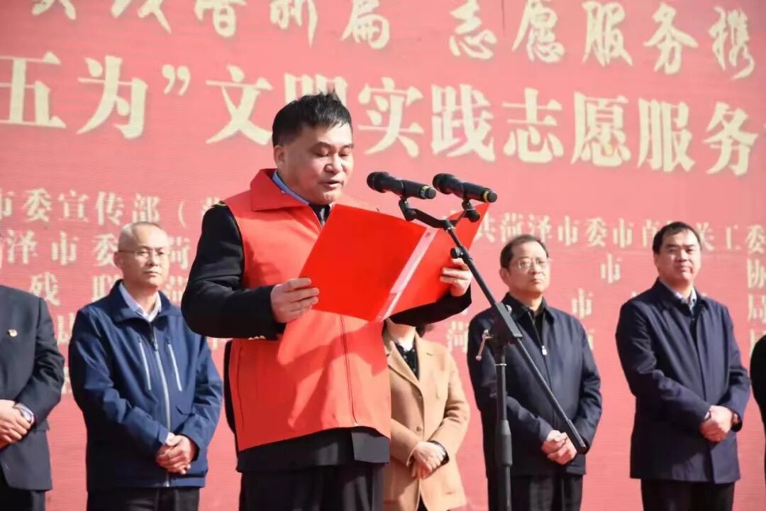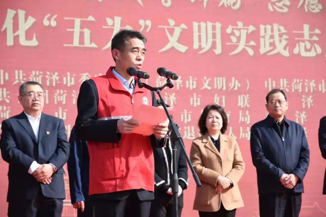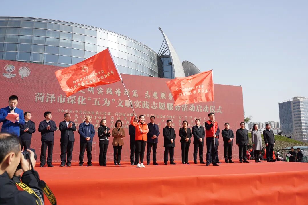 阳春三月,景致怡人。3月5日学雷锋纪念日,文明实践谱新篇 志愿服务携手行―― 菏泽市深化“五为”文明实践志愿服务活动启动仪式主会场在菏泽大剧院广场举行。全市新时代文明实践中心、实践所、实践站同步组织了现场志愿服务活动,主会场现场连线牡丹区、成武县、单县三个活动分会场。菏泽市委常委、宣传部部长、市委教育工委书记周生宏,菏泽市委常委、副市长王昌华,菏泽市人大常委会党组副书记、副主任、菏泽技师学院党委书记陈宝华,菏泽市政协副主席肖云以及主办单位的领导同志出席本次启动仪式。