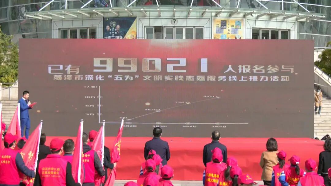 为进一步提高广大群众对文明实践志愿服务的知晓率和参与度,3月2日,15家主办单位启动了菏泽市深化“五为”文明实践志愿服务线上接力活动,通过“线下启动+线上接力”的形式联动构建起志愿服务宣传动员矩阵,截至上午九点,共计近10万名志愿者参与。