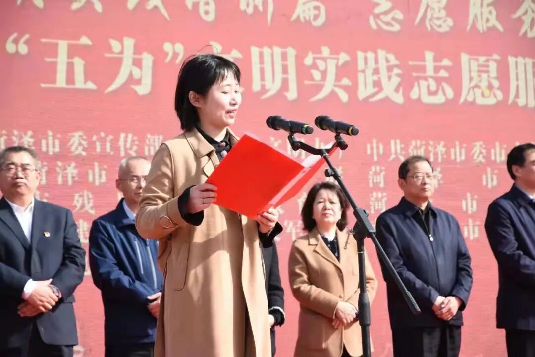 菏泽市委宣传部常务副部长、市文明办主任刘芙蓉向社会发布“五为”文明实践志愿服务重点项目