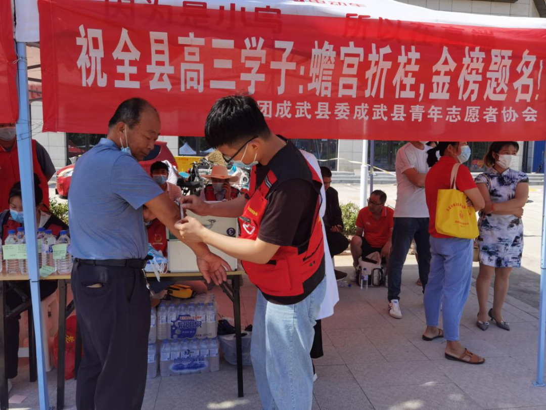 高考期间,成武县360多辆客运车和140多辆出租车为考生提供无偿送考服务;全力开启“静音”护考文明劝导活动,志愿者进行文明引导、秩序维护,关闭沿街商铺宣传喇叭、停止噪音施工;40余名志愿者在成武一中、成武二中考点门口设置爱心志愿服务站,满足考生应急的需求,设立休息区,为广大家长提供了纳凉休息的场所。