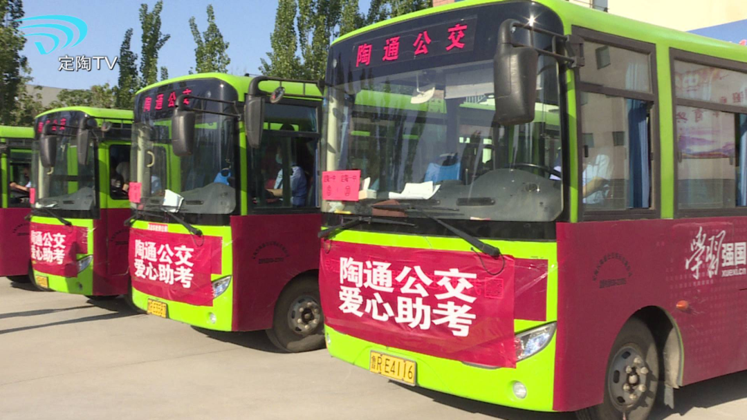 高考期间,定陶区各部门联合开展多项高考志愿服务活动。消防大队开展高考考点周边场所消防安全隐患检查和宣传工作;供电公司安排10名志愿者专职负责考场供电工作;陶通公交客运有限公司出动25辆“爱心公交车”助力高考,“爱心公交车”将运行200班次 ,运输高考师生约4000人次;定陶区人民医院急救站的医护人员守护在考点,为“健康高考”提供医疗保障;交警、巡警、安保志愿者维持考点周边的交通秩序,用心抓好道路安全、考点周边环境治理等工作。