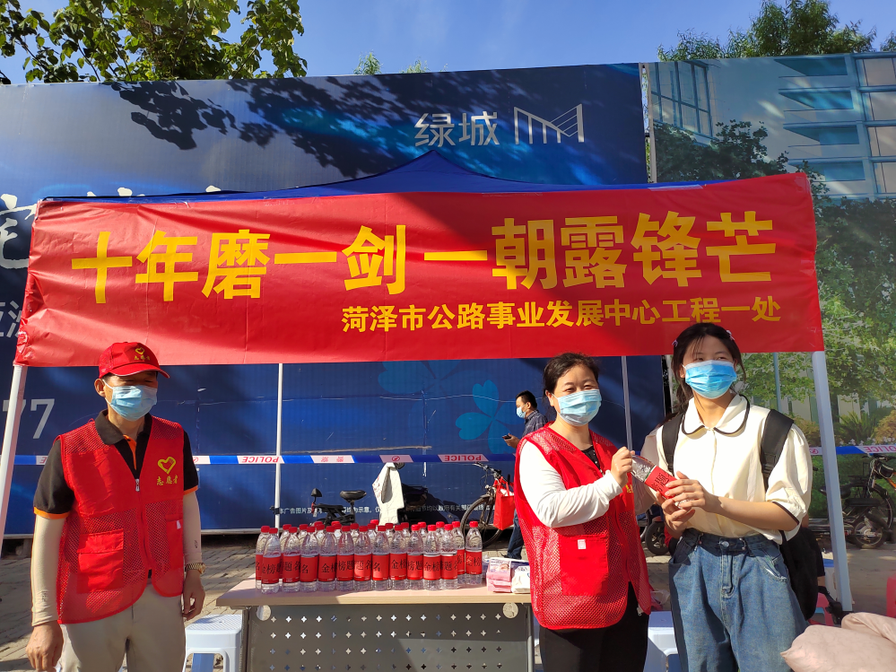 菏泽市公路事业发展中心工程一处开展“爱心助力高考”志愿服务活动。在牡丹区二十二中考点设立爱心助考服务点,为高考学子准备了考前“爱心礼包”,为陪考家长提供休息场所。