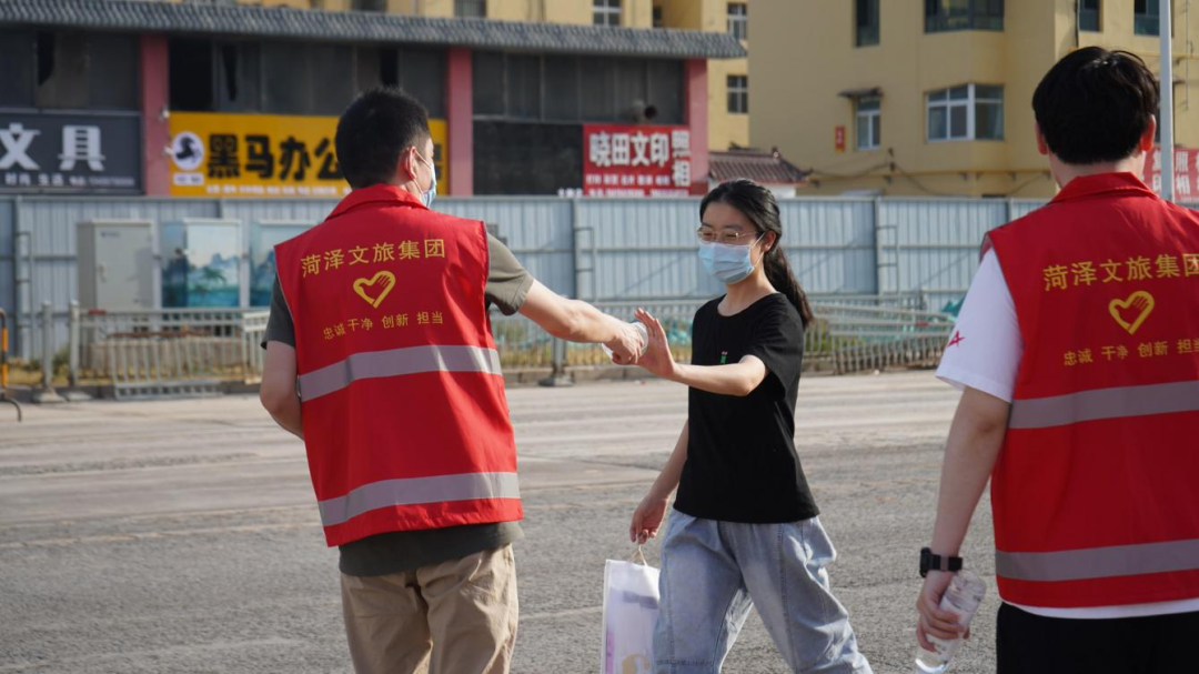 菏泽文旅集团在二十一中考点设置志愿服务站点,准备了口罩、文具、矿泉水等物资,以细心周到的服务为考生及家长提供服务,同时协助交警维持场外秩序、整治乱停乱放车辆,清理考点附近的垃圾等,用实际行动弘扬“奉献、友爱、互助、进步”的志愿精神,为高考考生保驾护航。