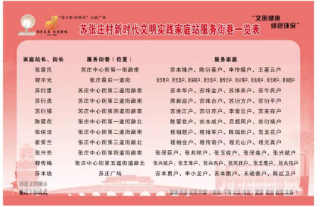 成武县汶上集镇苏张庄村共有11条街巷,为解决服务工作难以覆盖各街巷的问题,苏张庄村在每条街巷评选出一户“新时代文明实践家庭站”,“家庭站”的站长同时担任本条街巷的街长、巷长。他们不仅是街道治理的“排头兵”、移风易俗的“倡树人”,更是服务于街巷各家各户的“志愿者”。