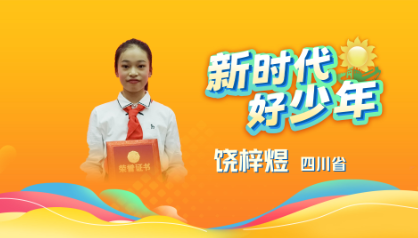 39、饶梓煜 女,汉族,2011年7月生,少先队员,四川省德阳市德阳中学校初2023级学生。她热爱文学、爱好演讲,10岁考过朗诵八级和播音主持八级,多次担任校内外活动主持人,积极参与《种下清廉的种子朗诵》《读习语,颂经典》等活动,并多次在省市演讲、朗诵比赛中获奖。2023年,在中央电视台播出的《2023开学第一课》上,她代表德阳的少年儿童向全国推介三星堆古蜀文明。曾获全国“优秀少先队员”、四川省“红领巾四星奖章”。