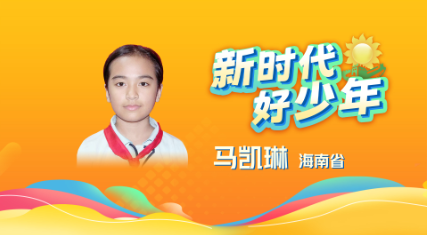 36、马凯琳 女,回族,2013年6月生,少先队员,海南省三亚市天涯区回辉小学五年级学生。她是位性格腼腆的小女生,小小年纪却做了件了不起的事情,从一年级起就主动背起先天双腿肌肉萎缩的同班同学蒲莎英上学放学,不管天寒酷暑一背就是五年。她善良的举动感染着同学们,大家纷纷加入到帮助莎英同学的爱心行动中来。莎英同学患病是不幸的,但是同学们的关爱让她感到很幸福,是马凯琳同学带头用她行动传播爱与温暖。曾获2024年“新时代海南好少年”。
