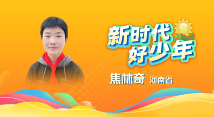 32、焦林奇 男,汉族,2011年2月生,少先队员,河南省鹤壁经济技术开发区龙岗初级中学七年级学生。他古道热肠、乐于助人,和因先天脑瘫、行动不便的李佳峻小学时就是同桌,自认识之日起,他便陪伴李佳峻的学校日常生活,充当“小拐杖”的角色。他成立帮扶小分队,发动同学轮流帮助李佳峻打饭、收拾餐盘、打开水、参加简单户外活动等。学校也为李佳峻开设一楼爱心班级、爱心三轮无阻车等特殊保障。5年来,焦林奇用他的责任、善意与爱心,陪伴温暖了李佳峻的校园时光。