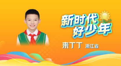 21、来丁丁 男,汉族,2013年1月生,少先队员,浙江省杭州市南肖埠小学五年级学生。他从三岁开始学习古诗词,迄今已有超3200首诗词储备,曾两次参加央视《中国诗词大会》,完成史无前例的诗词地名飞花令,登上年度英雄榜,《人民日报》称其“诗词歌赋信手拈来”。他致力于传播优秀传统文化,成立班级诗词社团,开设校红领巾广播国学专栏,带动身边人共同学习诗词。曾获“浙江少年诗词大会”小学组总冠军,“浙江诗词大会”楹联创作、书法大赛一等奖等荣誉。