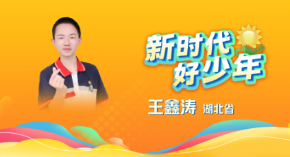 30、王鑫涛 男,汉族,2009年6月生,共青团员,湖北省十堰市竹山县宝丰镇宝丰中学九年级学生。作为“红领巾讲解员”,他主动承担起红色教育基地擂鼓铜锣洞战役纪念馆和施洋烈士纪念馆的讲解工作,积极发动全班同学,主动进社区、进学校、进公益性场所宣讲革命英雄故事,通过自创自编自导的相声表演、话剧等,将刘胡兰、董存瑞、邱少云等革命英雄人物搬上舞台。他在班级发起银杏文学社,组织同学创作诗词参加学校诗词文化节,吸引了一大批爱好诗词的同学一起朗诵诗词,在诗词文化的浸润下,人人讲文明的习惯在宝丰中学蔚然成风。