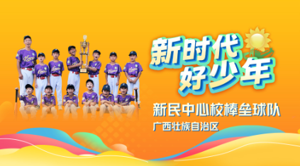 35、桂林市新民中心校棒垒球队 2021年,在广西壮族自治区桂林市的一所偏远乡村学校——新民中心校,组建了一支棒垒球队,队员多为留守儿童。孩子们从零开始训练,2023年球队首次参赛,便斩获全市中小学生软式棒垒球冠军,后出征全国赛获亚军,刷新了该项目组别广西历史上的最好成绩,8名队员获单项奖励。通过体育锻炼,“小胖墩”长成了健康娃,“胆小鬼”变成了开朗娃,小小的棒垒球,成为照亮乡村学校留守儿童前路的一束光,这群乡村少年从懵懵懂懂,到入门启蒙,再到千锤百炼,最后勇夺全国亚军,他们为热爱而战,带着昂扬的斗志和勇气,不断挥出自己人生的“本垒打”。