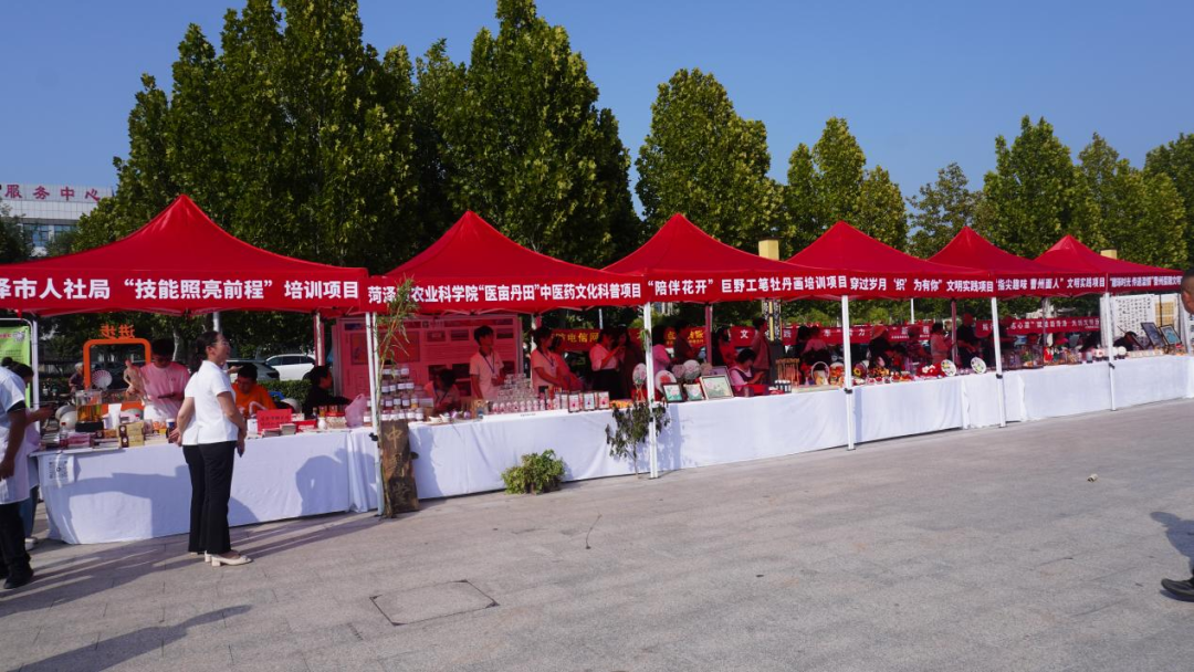 仪式现场设置了中医义诊、非遗展示、志愿服务等便民服务展位,现场展示了鲁西新区文化书院“岳享朝夕”、“雕琢时光 传递温情”曹州蛋雕、“指尖趣味 曹州面人”、“穿过岁月 ‘织’为有你”和“陪伴花开”工笔牡丹画培训等文明实践项目,市人社局“技能照亮前程”培训项目、市卫生健康委“中医惠生活”项目、市红十字会应急救护培训进社区项目、市农业科学院“医亩丹田”中医药文化科普项目、菏泽农商银行金融文化宣讲宣传项目从不同维度满足群众多样化的精神文化需求。