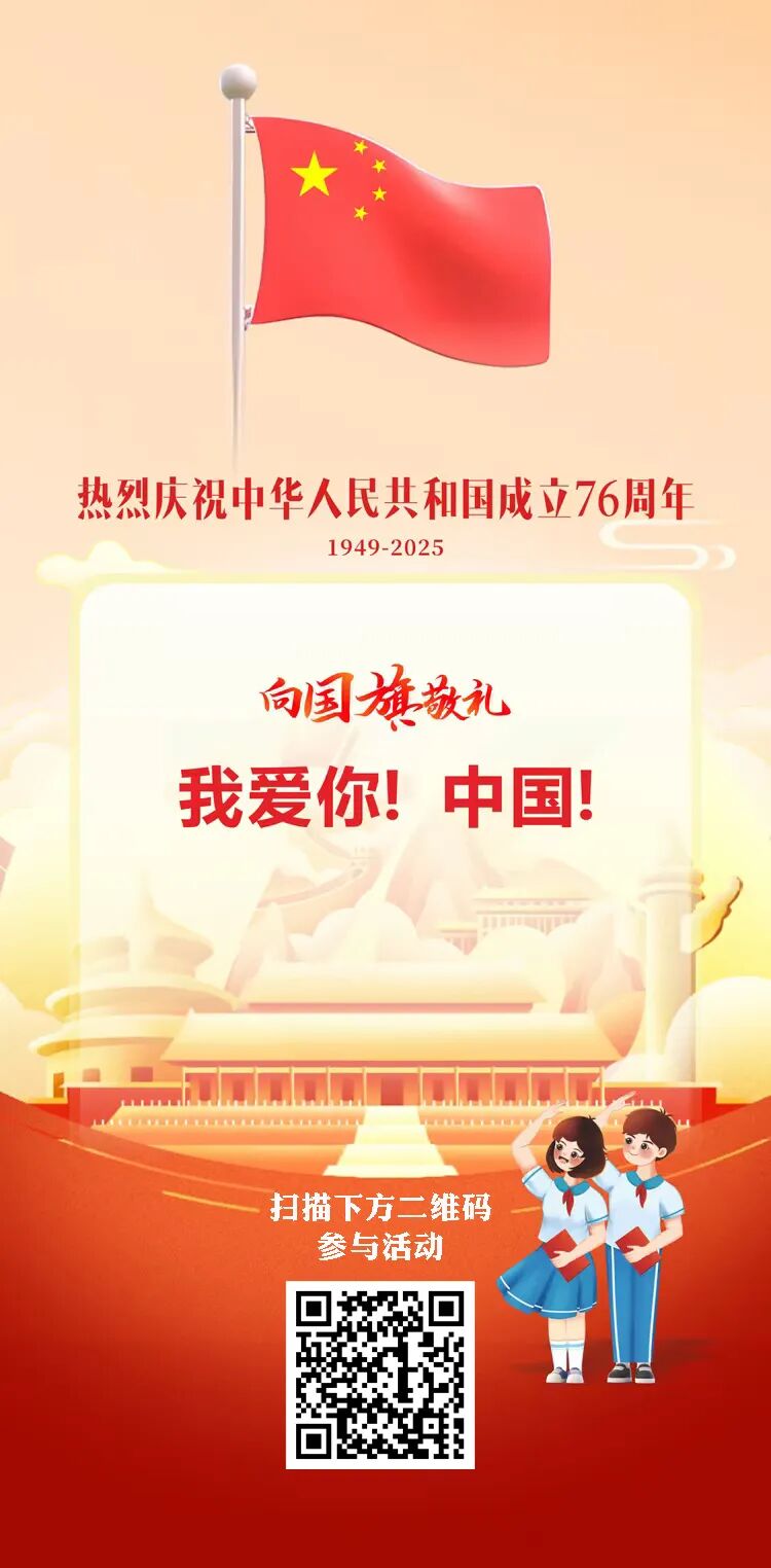 为热烈庆祝中华人民共和国成立76周年,菏泽市文明办、菏泽市教育和体育局组织开展“2025向国旗敬礼”网络文明传播活动,广大网友可通过文明菏泽微信公众号专题页面参与活动,让我们一起为祖国庆生,向国旗敬礼!