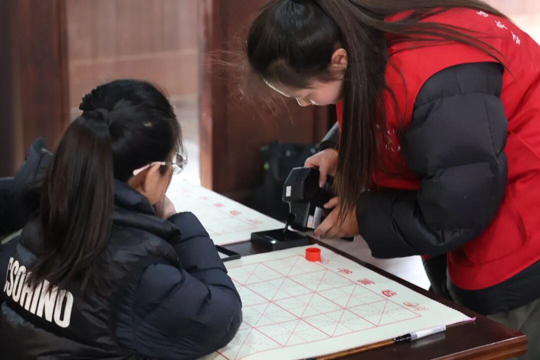 “以前总觉得非遗离我们很远,今天自己动手帮孩子穿线、研墨、裁纸,才知道原来我们家乡的传统文化这么有魅力。”活动结束时,孙美亚这样总结她的一天。她身边的孩子们正举着窗花、织锦、福字,争相与“小老师”们合影。夕阳穿过曹州书院的重重院落,将红马甲和红窗花叠在一起,染成同样的暖色。“暖冬伙伴”的故事,仍在牡丹区城乡的新时代文明实践阵地里续写。