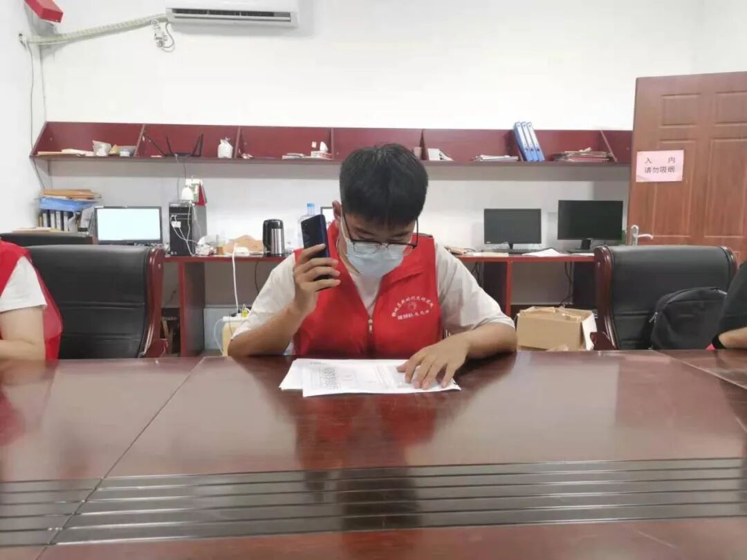 从7月下旬起,每天有近千例需排查随访信息,还有大量的第二针剂应接未接者需要逐一打电话排查通知。返乡大学生纷纷响应号召,自觉加入武安镇防疫队伍,组成志愿服务队,配合社区工作人员进行人员信息排查工作和疫苗接种登记工作。办公室里电话铃声此起彼伏,随访电话和村民的咨询电话一个接一个,现场一片忙碌。志愿者们一一打电话询问居民近期旅居史,同时也有大量返乡人员不断地打来电话咨询,每天每人至少要接打电话100多次,时间一长,他们每个人的嗓子都有些嘶哑。“面对疫情,基层工作人员不顾自身安危,日夜奋战在疫情防控的第一线,作为学生志愿者,我们自愿加入到疫情防控中,为家乡贡献自己的一份力量,疫情不退、我们不撤。”听到志愿者招募的消息,来自山东财经大学的宋佳慧第一时间挺身而出。