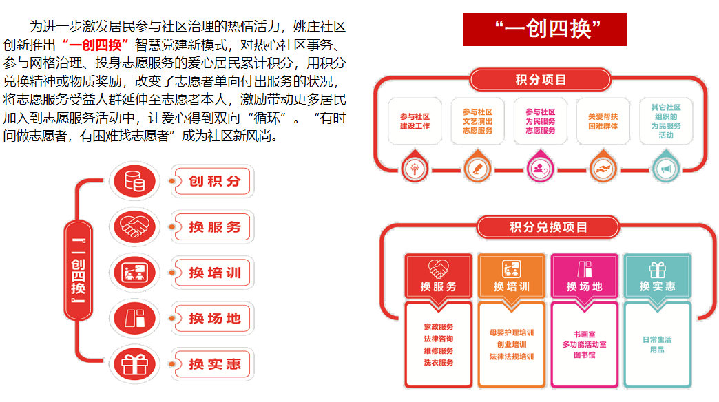 姚庄社区“一创四换”志愿服务积分兑换制度