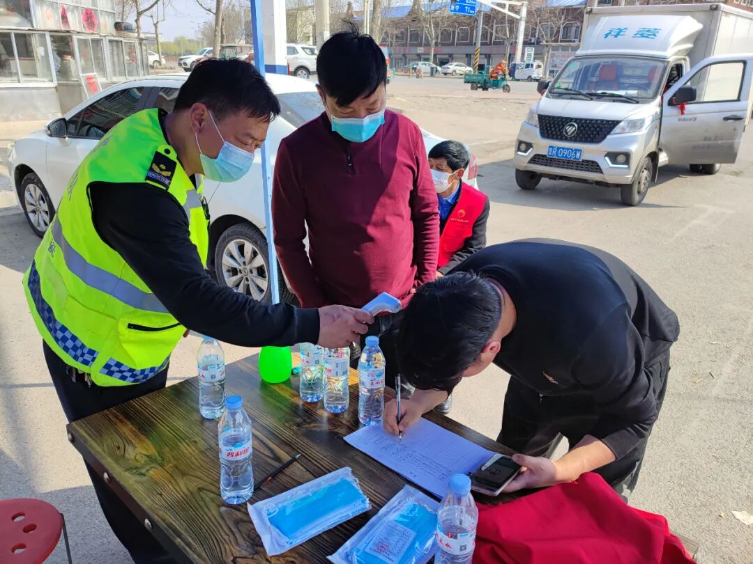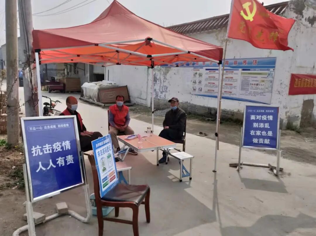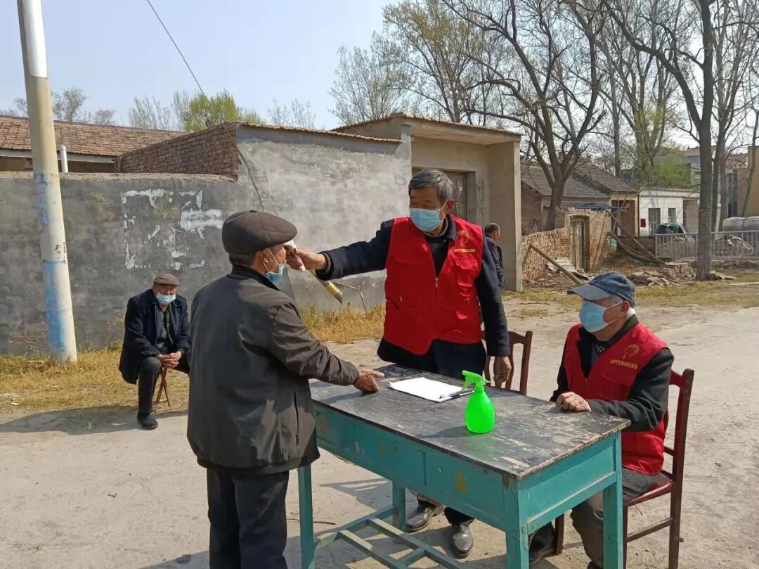 老党员们按照统一部署,认真、细致地检查村庄内行人及车辆进出的健康码、出行卡,登记外来人员和车辆信息,测量村庄来往居民的体温,并耐心向他们宣传讲解疫情防控政策。