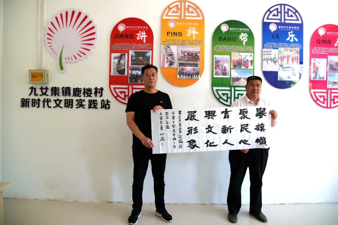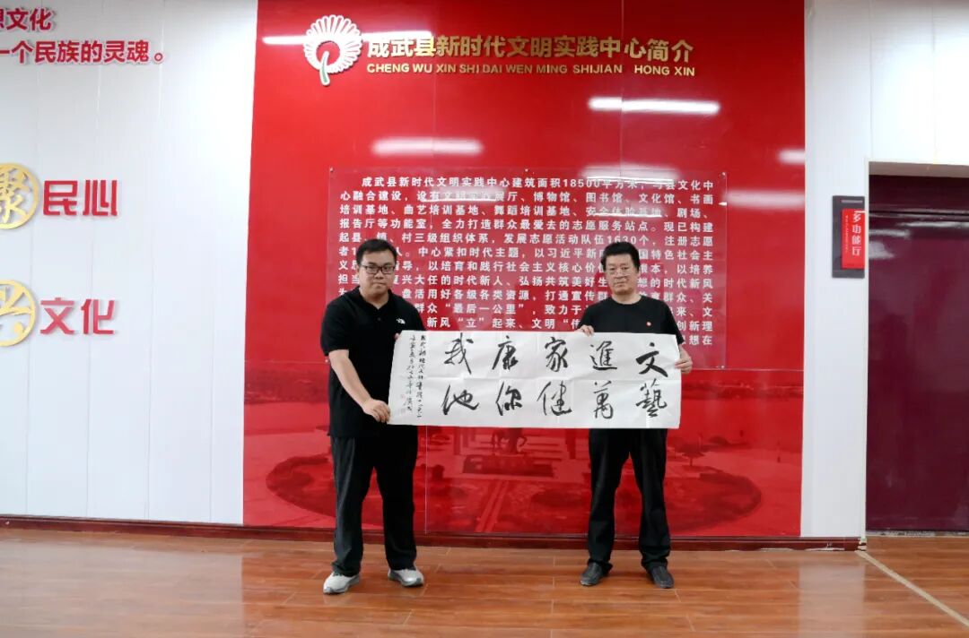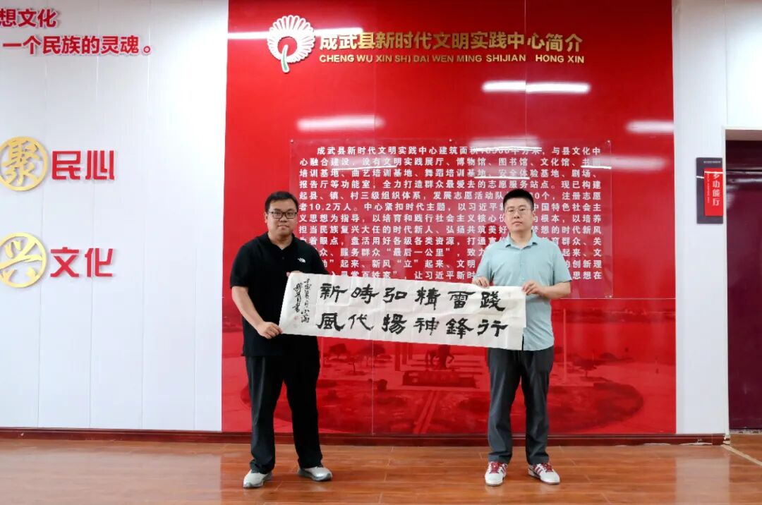 在喜迎二十大――“到人民中去”菏泽文艺志愿者在行动主题活动书画进企业前,田继雷一行先后到成武县九女集镇鹿楼村新时代文明实践站、成武县新时代文明实践中心和博物馆进行调研,通过听讲解、看展板,走进文明实践中心、文明实践站等实地感受,深入了解成武县新时代文明实践建设和运行情况,以及文物发掘、来源、历史和利用等,并向县新时代文明实践中心、九女集镇鹿楼村实践站赠送了四幅书法作品。