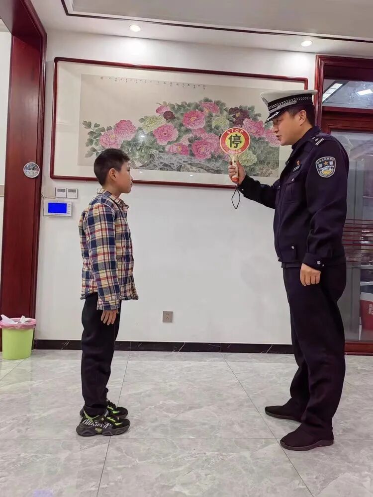 热心的交警家长通过屏幕现身说法,与孩子现场互动,展示了常用的交通手势,普及了一些基本的交通安全常识,增强了孩子们的安全意识。