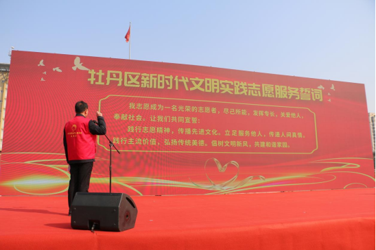 “践行志愿精神,传播先进文化。立足服务他人,传递人间真情。践行主流价值,弘扬传统美德。倡树文明新风,共建和谐家园。”这段牡丹区新时代文明实践志愿服务誓词3月2日再次回荡在牡丹区生态广场。在总队长尹茂林同志领誓下,全体志愿者庄严宣誓。与去年宣誓时不同的是志愿者们的心态,经过一年更加规范、精准的志愿服务,在全市“菏心抗疫”疫情防控志愿服务活动中、在创建全国文明城市的各条战线上、在乡村振兴的征途中...处处都留下了志愿者的身影。他们是党员、是干部、是企事业单位的工作人员、是普通群众,在工作范畴之外,他们不忘发挥余热,践行志愿精神,志愿服务社会。全区涌现出200个牡丹区“五为”文明实践志愿服务先进典型,16个菏泽市学雷锋文明实践志愿服务先进典型,3个山东省学雷锋“四个100”。志愿者们用实际行动践行誓词、诠释誓词、发扬志愿服务精神。