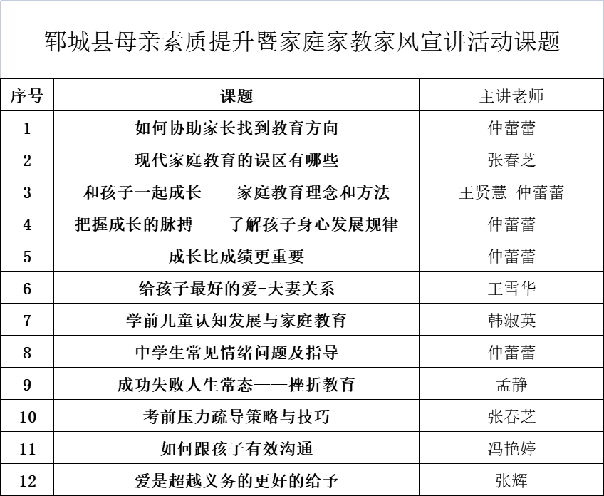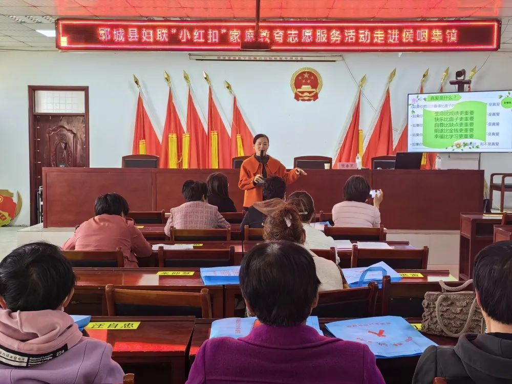 为深入贯彻落实习近平总书记关于注重家庭家教家风建设的重要论述精神,推进母亲素质提升,营造良好家庭环境,呵护儿童健康成长,郓城县启动2023年度母亲素质提升暨家庭家教家风宣讲文明实践志愿服务活动,精心编制了12个宣讲课程,组织“小红扣”家庭教育志愿者赴各乡镇(街道)、村(社区)开展专题宣讲,把家庭教育课堂送到群众家门口。