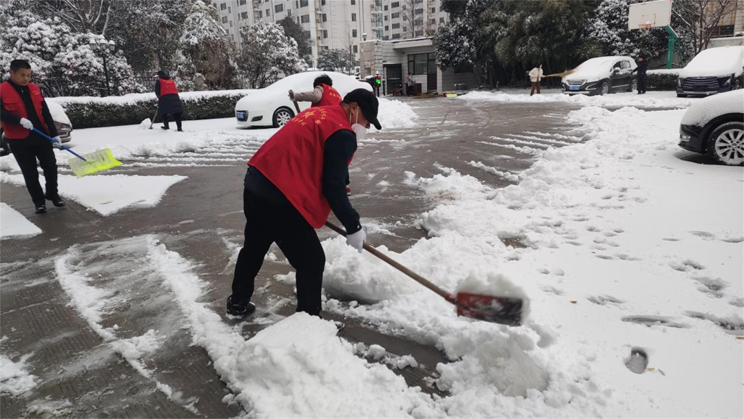 志愿者清扫责任区内的积雪
